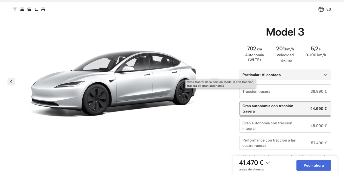 Uno de los puntos más destacados del Model 3 2024 es su precio. Con un costo base de 44,900€, resulta notablemente más asequible que los modelos anteriores, considerando además que los posibles incentivos fiscales y estatales pueden reducir aún más el precio. Esto significa que los compradores pueden obtener un coche más avanzado y eficiente por mucho menos dinero que en el pasado, lo cual es una clara señal de progreso en el mercado de los vehículos eléctricos.
